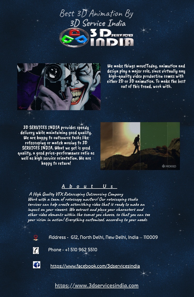 Visuals that make you stare! 3D services India brings cutting edge VFX services to a whole new level! With a team of outstanding and passionate professionals.