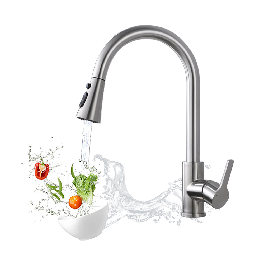 Küchenwaschbecken Edelstahl Wasserhahn Gebürsteter Nickel ausziehbar Küchenarmatur mit Brause Matt Homelody
