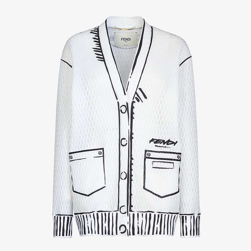 Fendi Roma Joshua Vides Quilted Cardigan In Mesh Fabric White