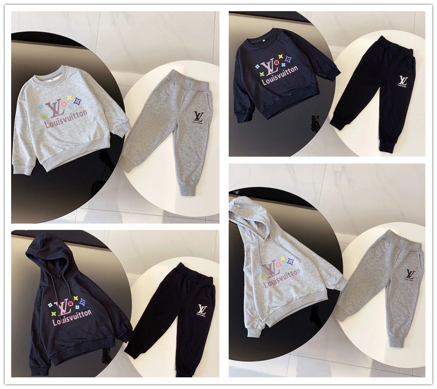 ルイヴィトンブランド キッズ パーカー長パンツ 2点セット Louis Vuitton シンプル 高品質 プルオーバー 子供服 秋冬 裏起毛 暖かい ガールズ ボーイ キッズ服 普段着