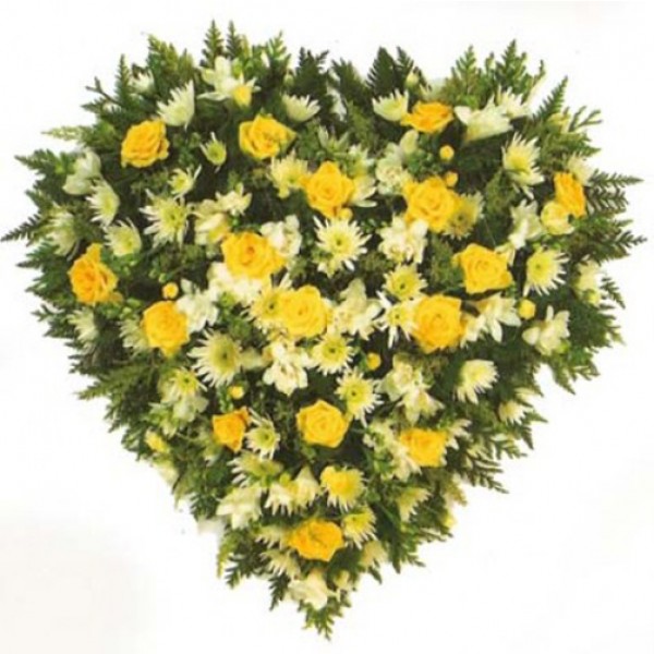 50 Yellow Seasonal Flowers Heart Shape Arrangement