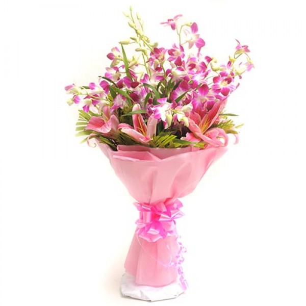 Enchanting Pink Orchid Bouquet Wrapped beautifully these 10 purple orchids can be an amazing surprise for your dear ones.