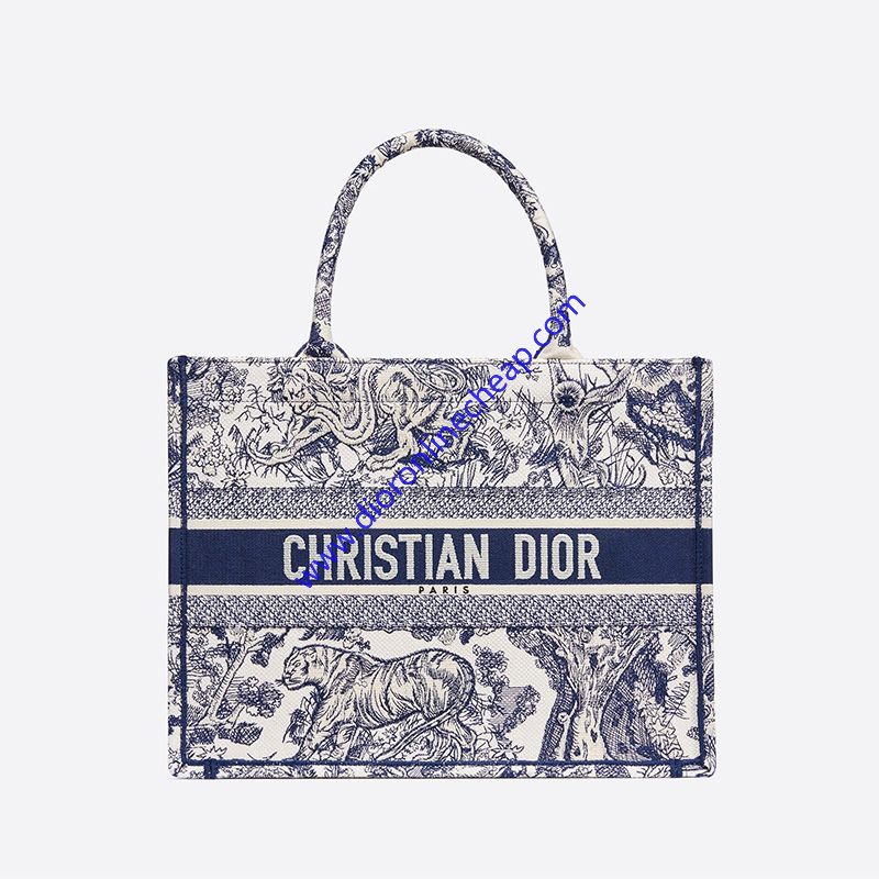 Dior Book Tote Toile De Jouy Embroidery Canvas Blue
