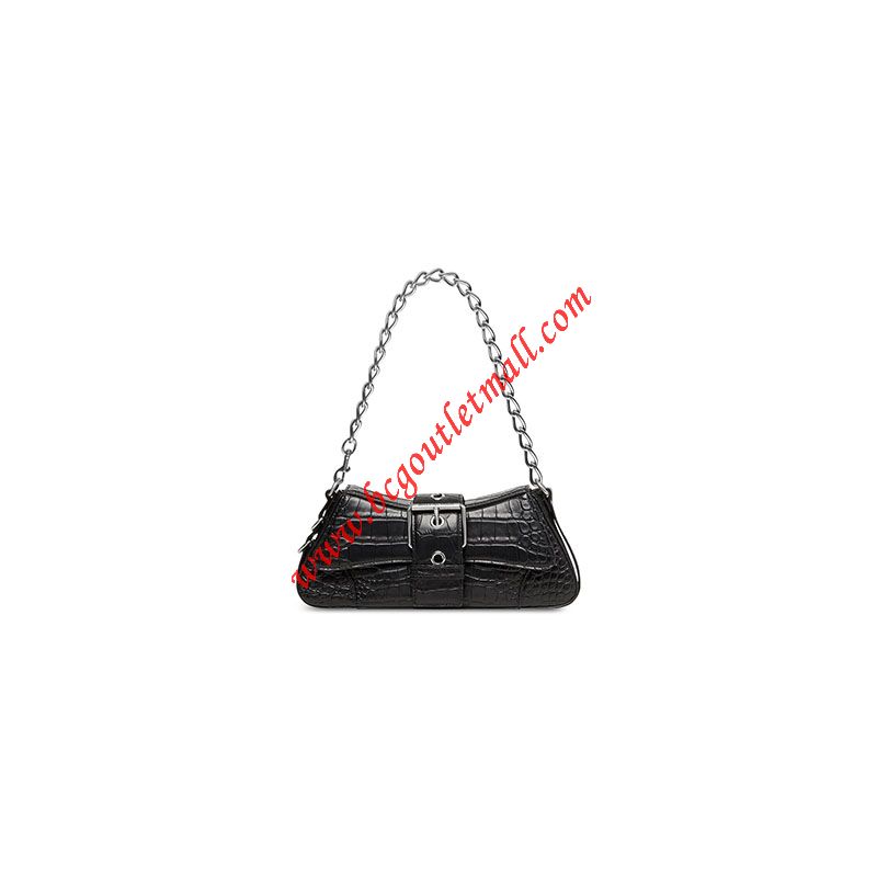 Balenciaga Small Lindsay Shoulder Bag with Strap Crocodile Embossed In Black