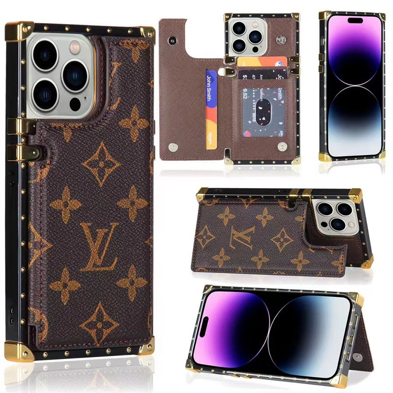 LV iphone14 case inspired Gucci trunk type shockproof iphone14plus 15 14pro max case burberry coach card holder wallet iphone13 13pro max case MK women men popular