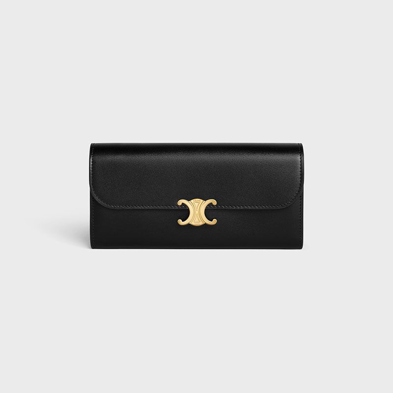Celine Large Bi-Fold Wallet in Shiny Calfskin Black