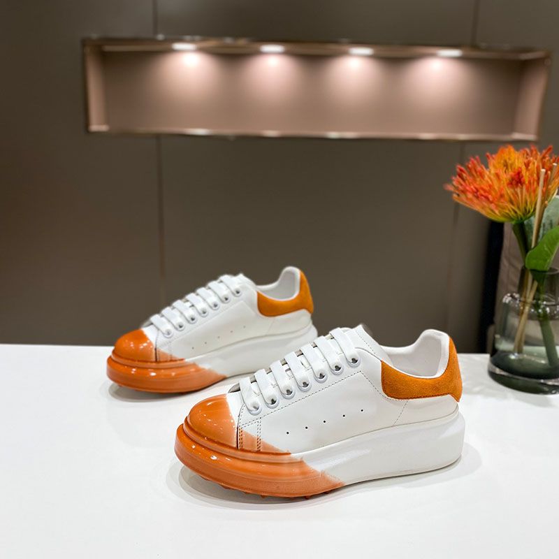 Alexander Mcqueen Oversized Sneakers Unisex Calf Leather with Melange Spray White/Orange