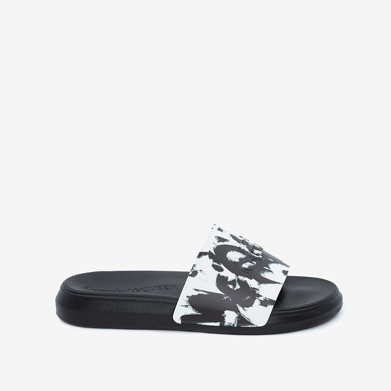 Alexander Mcqueen Pool Slides Unisex Rubber with Graffiti Printing Black/White