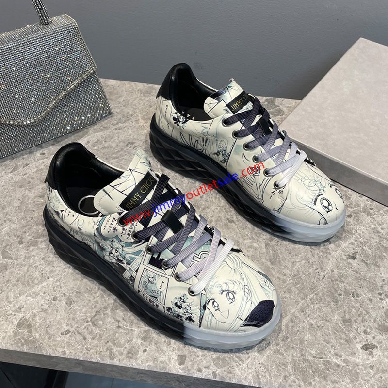 Jimmy Choo Diamond Light Maxi F Sneakers Women Leather With Graffiti Sailor Moon White/Black