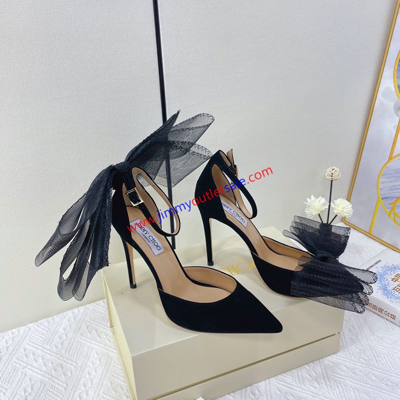 Jimmy Choo Averly 100 Pumps Women Suede With Oversized Mesh Bows Black