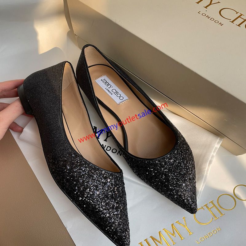 Jimmy Choo Romy Flats Women Glitter Fabric Black