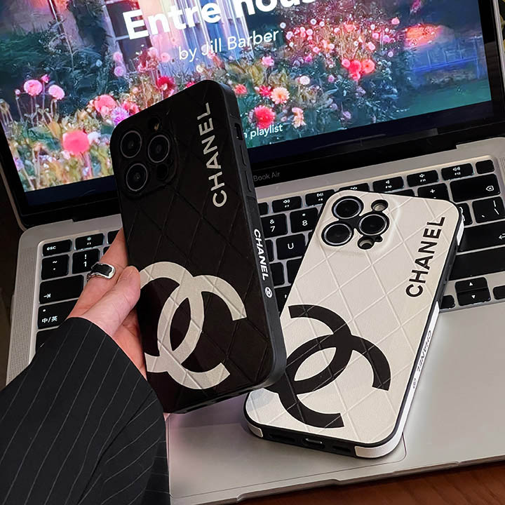 シャネル iphone15 ケース レザー 菱形紋様 Chanel ブランドロゴ アイフォン 15plus スマホケース シンプル 白黒 薄型-Cutezaka