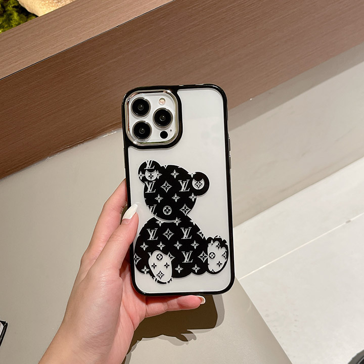 ルイヴィトン 黒 iphone15 透明ケース くま 可愛い ブランド アイフォーン 15プロ ケース シンプル 薄型-Cutezaka