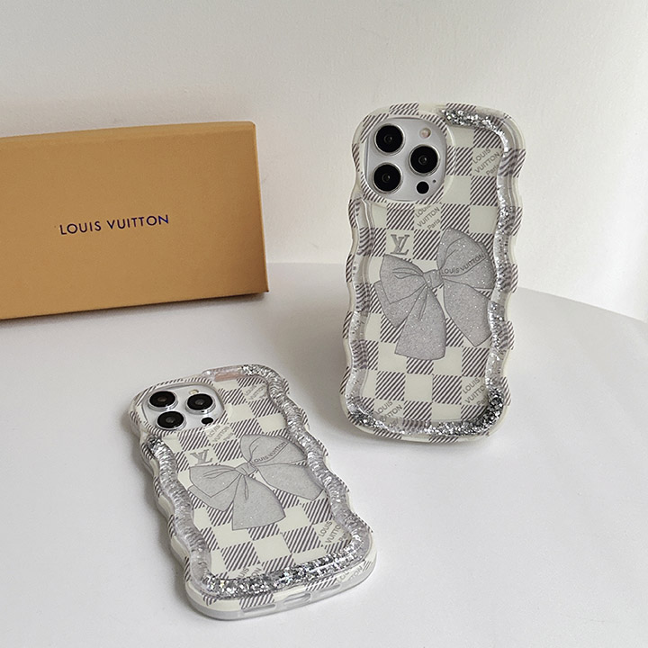 ルイヴィトン iphone15 スマホケース ウェーブ シルバー グリッター リボン ヴィトン風 アイフォン15 携帯ケース チェック柄 流砂殻 女性愛用-Cutezaka