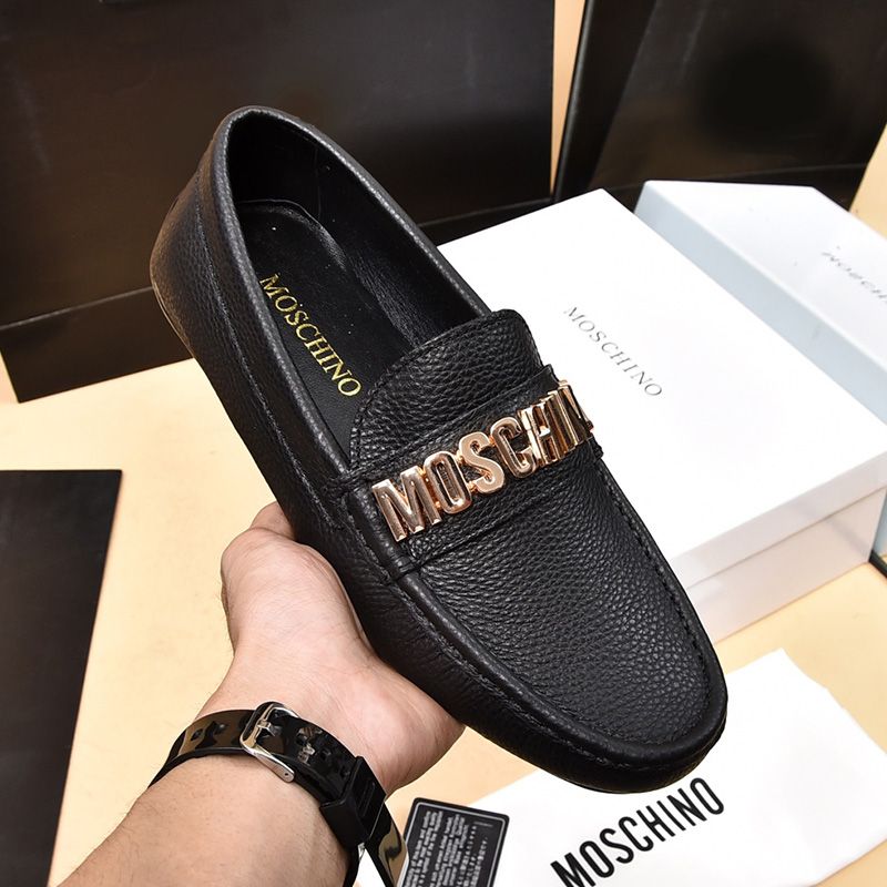 Moschino Lettering Logo Men Calfskin Loafers Black