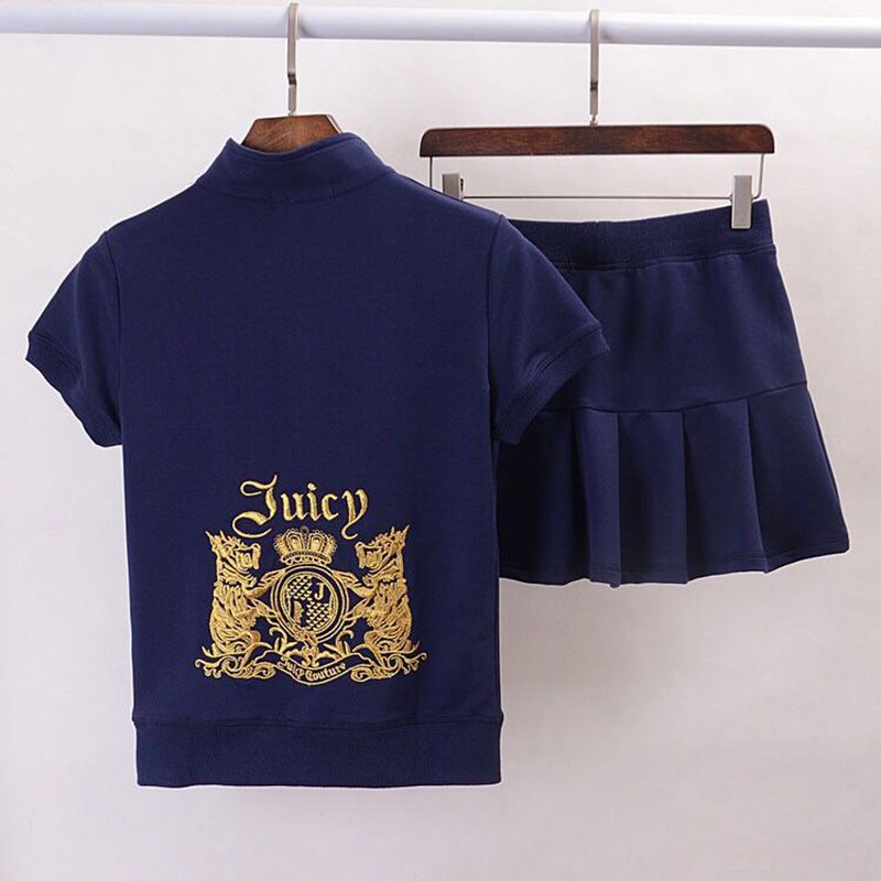 Juicy Couture Juicy Emblem Velour Tracksuits 3220 2pcs Women Suits Navy Blue