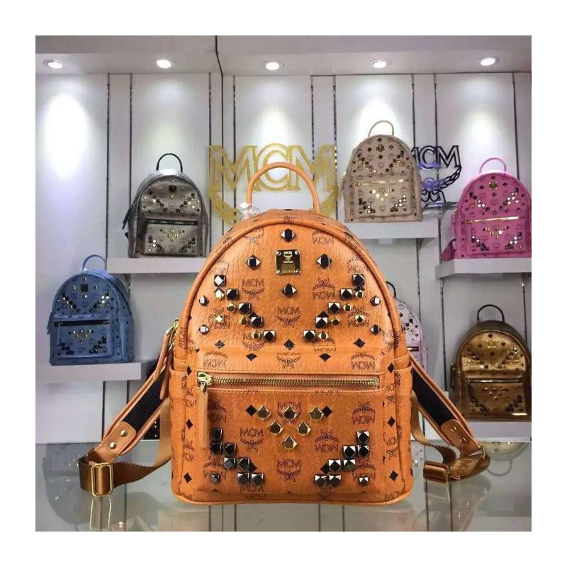 MCM Mini Stark M Studs Backpack In Visetos Brown