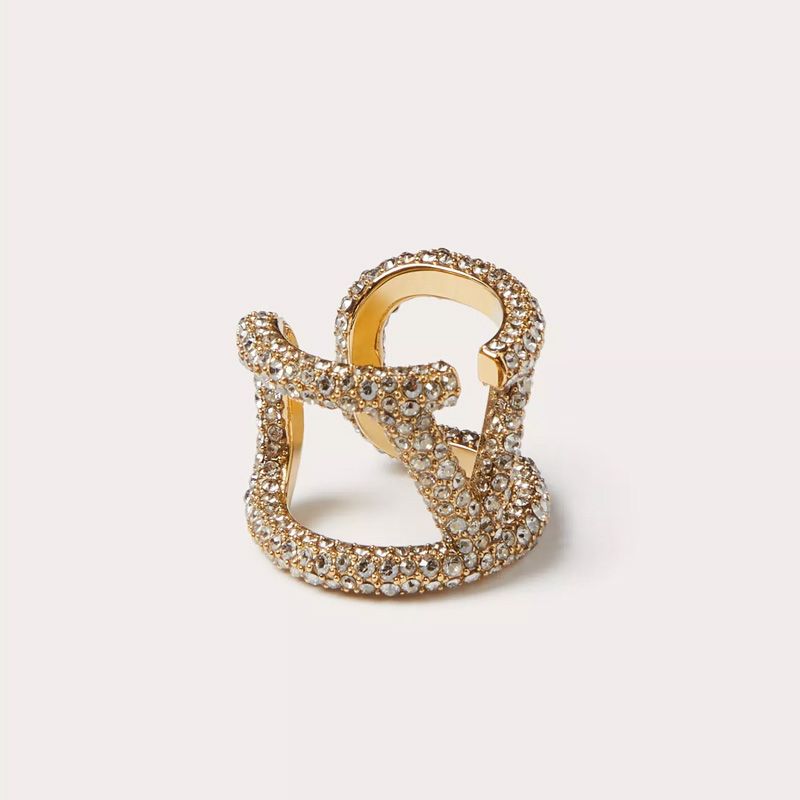 Valentino VLogo Signature Open Ring In Metal with Swarovski Crystals Gold