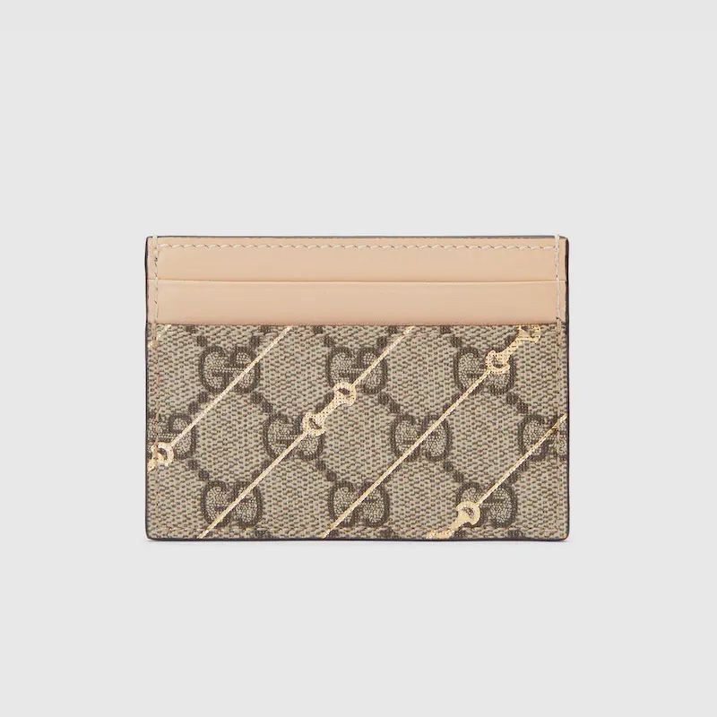Gucci Card Case with Horsebit Motif In GG Supreme Canvas Beige/Apricot