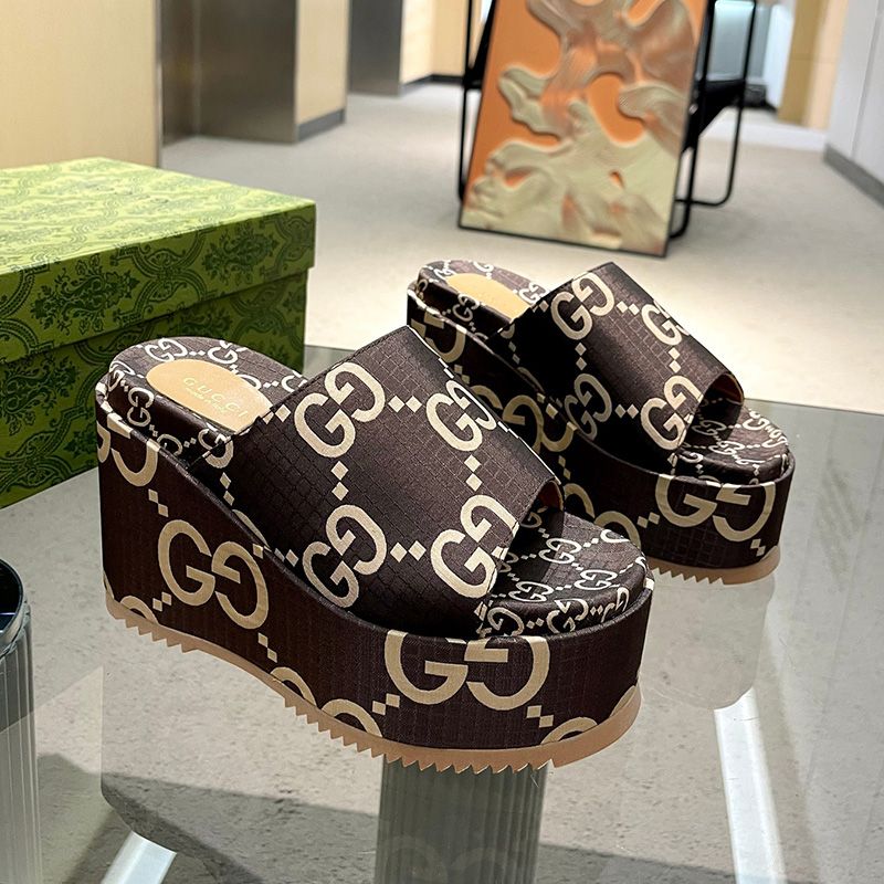 Gucci Platform High Heel Slides Women GG Canvas Black