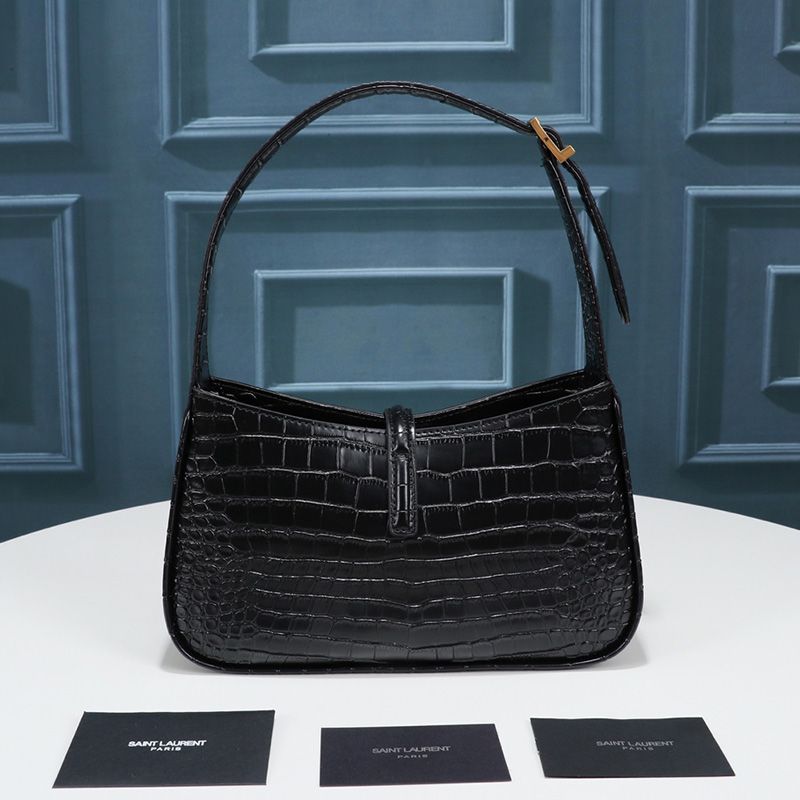 Saint Laurent Le 5 A 7 Hobo Bag In Crocodile-Embossed Shiny Leather Black/Gold