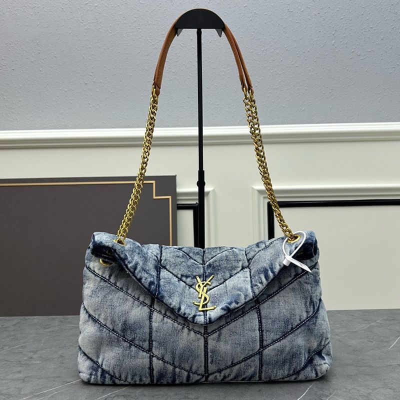 Saint Laurent Medium Loulou Puffer Bag In Denim Blue/Gold