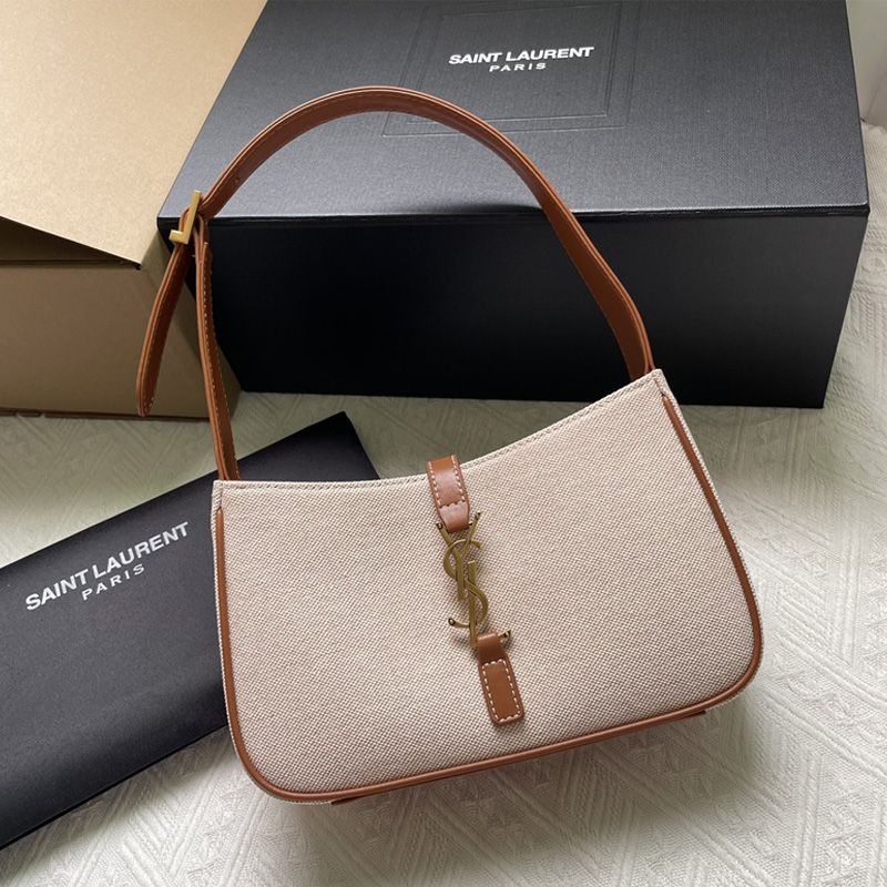 Saint Laurent Le 5 A 7 Hobo Bag In Canvas Beige/Brown