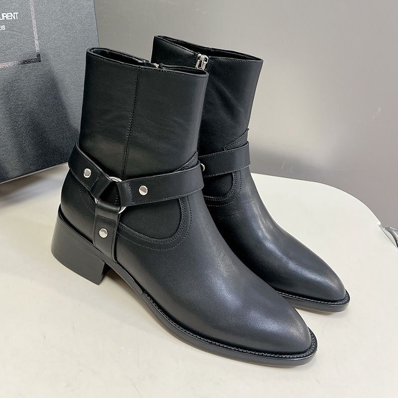 Saint Laurent Wyatt Harness Ankle Boots Women Smooth Leather Black