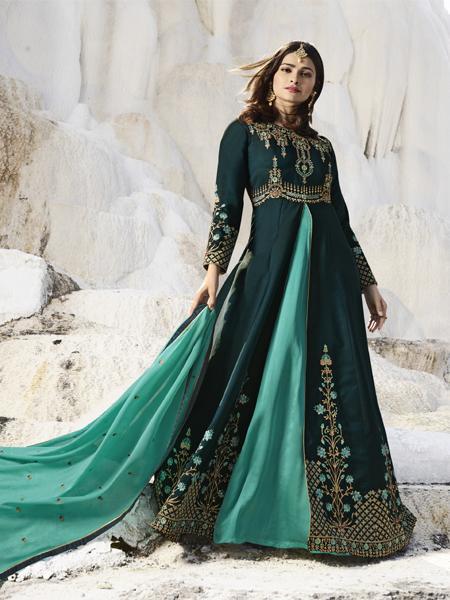 Buy Peacock Blue Embroidered Anarkali Suit Online in India – YOYO fashion – YOYO.Fashion