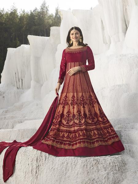 Buy Maroon & Peach Embroidered Anarkali Suit Online in India | YOYO Fashion – YOYO.Fashion